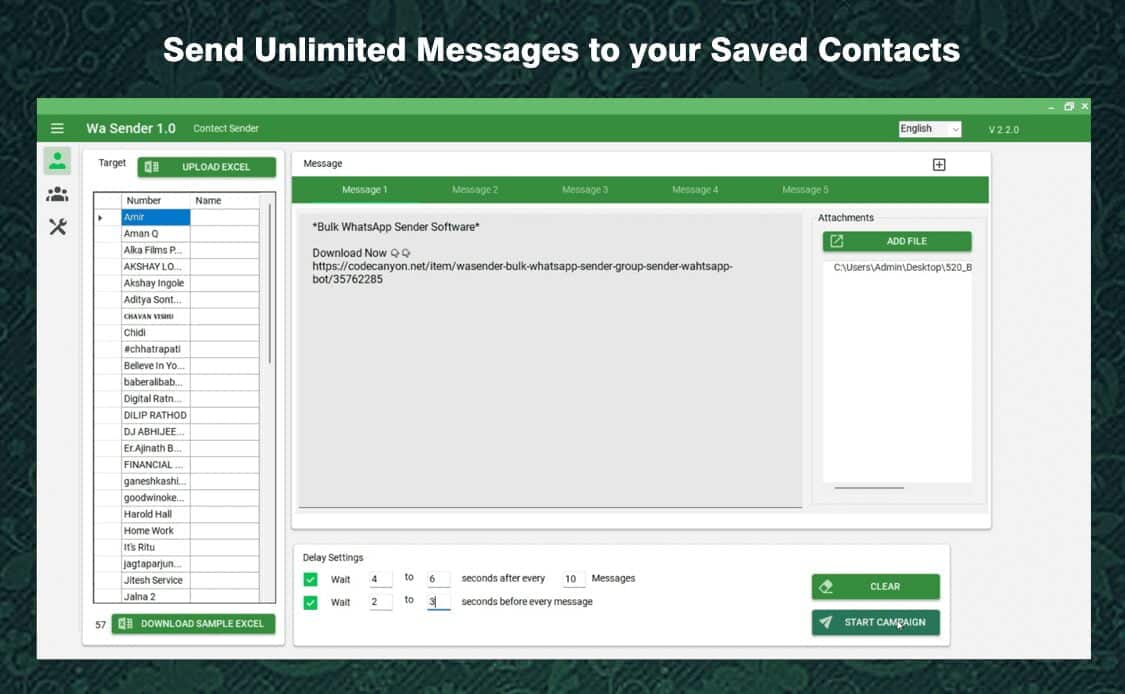 10) Do not send more than 600 messages per hour. Bulk Whatsapp Sender has a unique capping option where you can tell Bulk Whatsapp Sender when to stop sending messages.